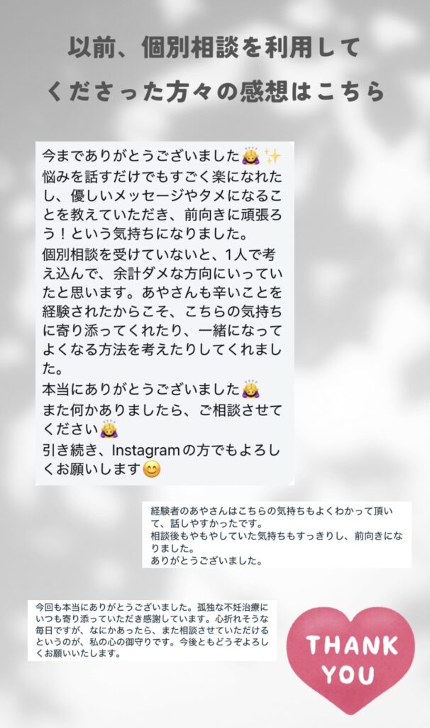 だれにも話せない「不妊治療中のお悩み」は、私に相談してくださいね。