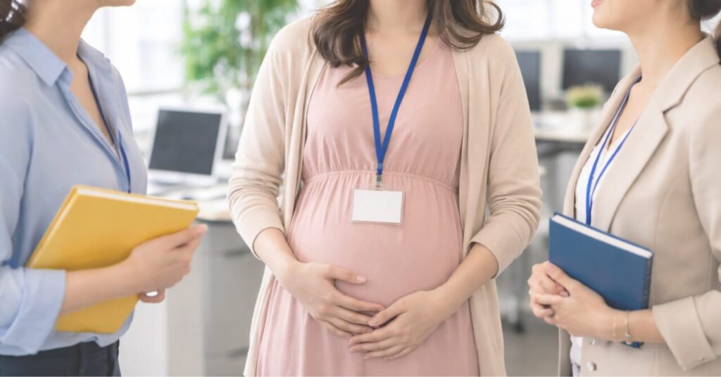 会社に赤ちゃんをお披露目に来た産休中の同僚